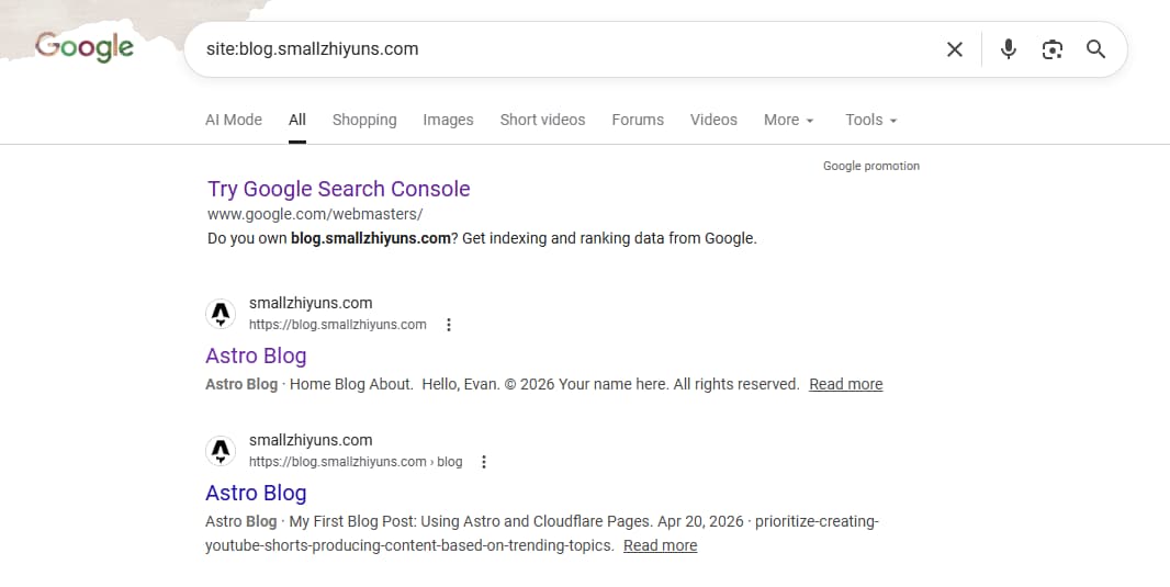 I went ahead and shared one of my posts (though it currently displays Astro’s default cover image; I still need to configure a custom one. Once this current article is published, I’ll test out how its social sharing card renders).